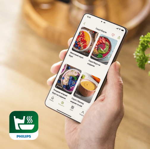 Завантажте та відкрийте для себе застосунок NutriU, що містить “безліч” ідей щодо приготування улюблених напоїв, страв та закусок за допомогою нового блендера.