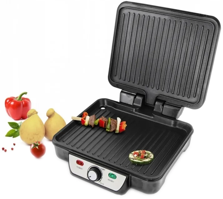 Тип нагріву: ТЕН; Регулювання положення пластини; Кут відкриття кришки: 180 ° С; Плавне регулювання температури; Термостат
