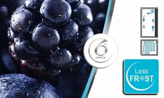 Технологія 6th Sense Control забезпечує постійний контроль температури в режимі реального часу, негайно реагуючи на коливання температури, швидко відновлюючи її для підтримки свіжості продуктів. Крім того, ця технологія мінімізує коливання температури в морозильній камері, знижує 'морозні опіки' і захищає продукти від втрати форми, кольору і якості.