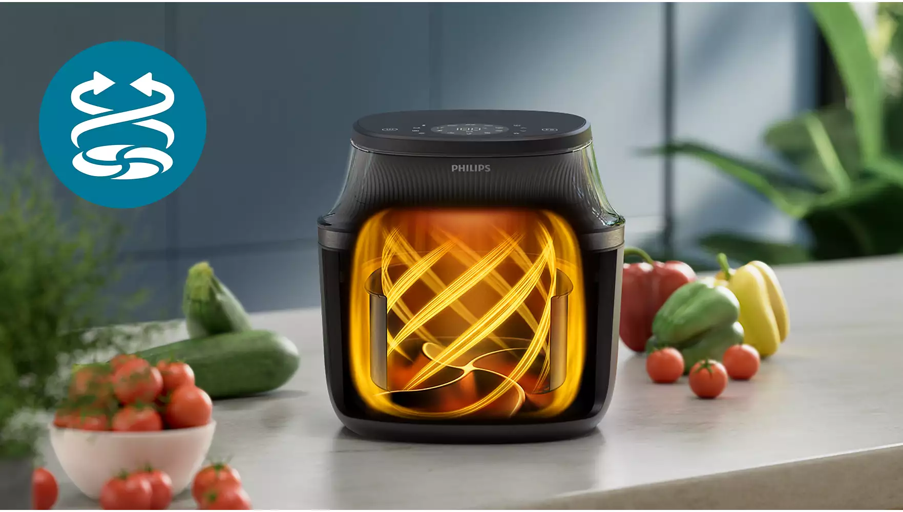 Насолоджуйтесь смачною їжею, яка містить до 90% менше жиру. Запатентована технологія RapidAir Plus з унікальною конструкцією у формі зірки має більшу швидкість потоку, забезпечуючи циркуляцію гарячого повітря навколо та крізь страву, завдяки чому вона готується рівномірно всередині та зовні, а ви отримуєте смачну домашню страву.