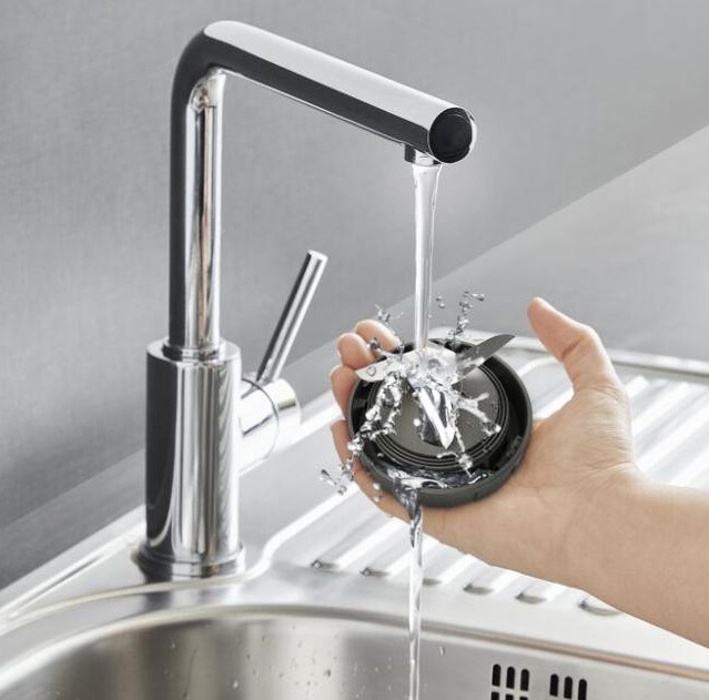 Прибор за считанные минуты измельчает и смешивает продукты разной консистенции и степени твёрдости — от фруктов и зелени для смузи до мяса для фарша.