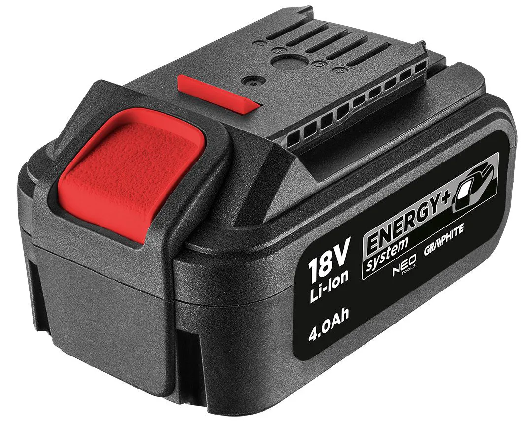 Акумулятор GRAPHITE Energy + 18 В, Li-Ion ємністю 4,0 А-год. З можливістю дозаряджання без ризику втрати ємності. Обладнаний індикатором, електронною системою контролю температури та проходження струму протягом процесів зарядки-розрядки.