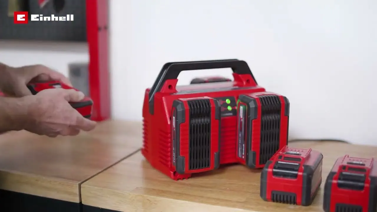 Зарядний пристрій для чотирьох акумуляторів Einhell 2x2 Power X-Quattrocharger 4A із серії Expert plus лінійки Power X-Change system є ефективним рішенням для зарядки двох або чотирьох акумуляторів Power X-Change Li-ion 18V або Power X-Change Plus Li-ion 18V . Володіючи чотирма слотами для акумуляторів та технологією швидкого заряджання струмом 4А, пристрій забезпечує швидке та надійне відновлення заряду навіть для акумуляторів з різними номіналами потужності. Інтелектуальна система керування зарядкою та постійний моніторинг стану акумуляторів гарантують оптимальну зарядку та збільшений термін їхньої служби. З легкою ручкою для перенесення та можливістю мобільного використання, цей зарядний пристрій ідеально підходить як для робочого місця, так і для будівельного майданчика, забезпечуючи зручність та ефективність роботи.
