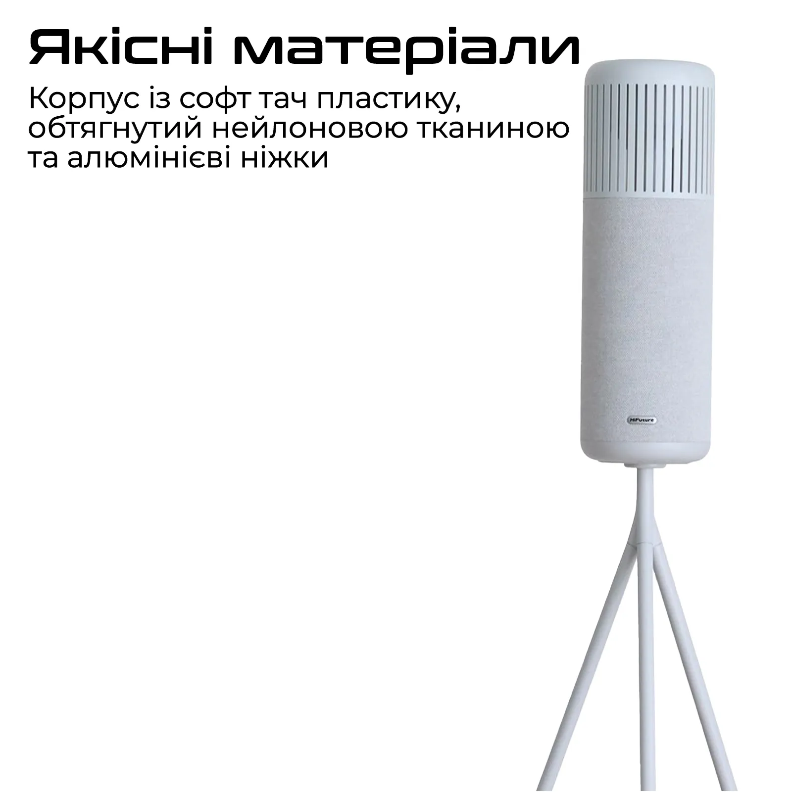 Корпус із софт тач пластику, обтягнутий нейлоновою тканиною та алюмінієві ніжки.