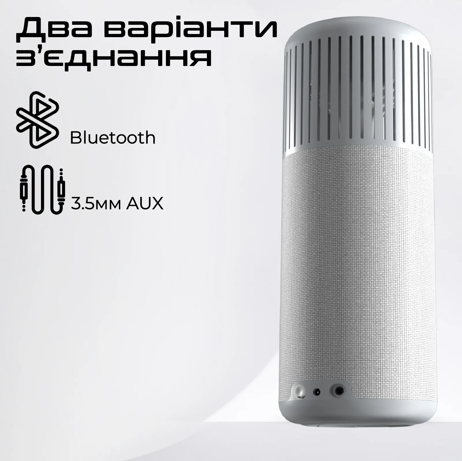 Прослуховуй музику через Bluetooth (до 10 м) або підключивши ґаджет за допомогою 3.5 мм аудіо-кабелю (AUX).