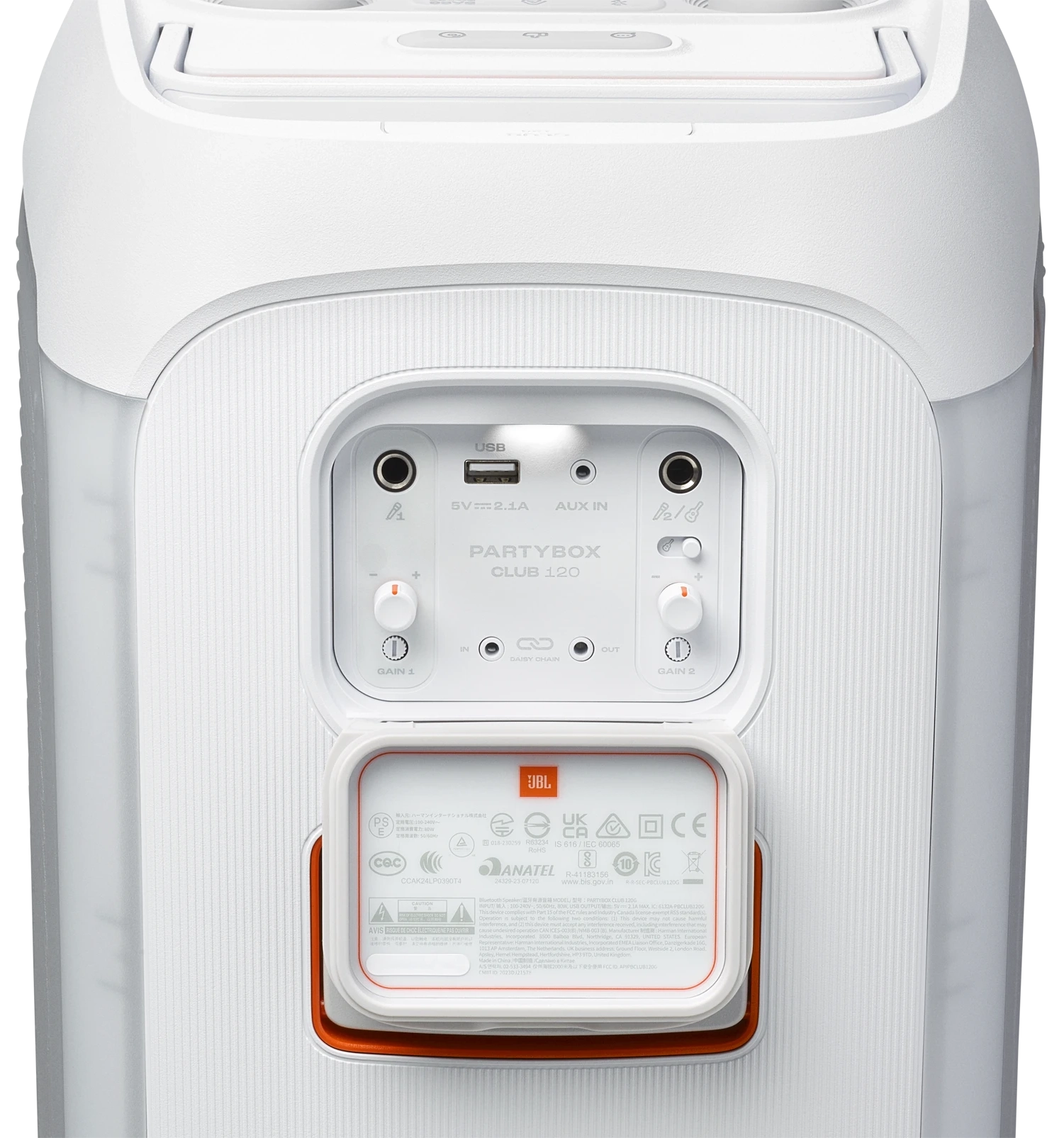 Незалежно від того чи це вечірка з друзями в парку, чи на березі моря, JBL PartyBox Club 120 має захист від бризок IPX4, тому невеликий дощ не завадить розвагам.