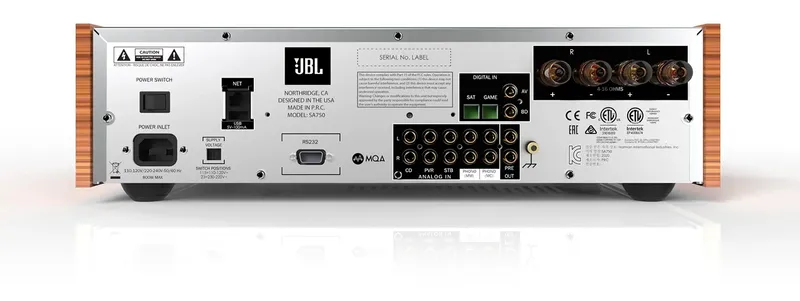 Модель SA750 натхнена класичним підсилювачем JBL SA600 60-х років, оновленим найновішим потоковим аудіо, бездротовим підключенням, корекцією звуку під приміщення Dirac Live і технологією підсилювача класу G. SA750 оснащений ЦАП високої роздільної здатності, має вбудований Wi-Fi для сумісних пристроїв. Це також кінцева точка Roon. Постачається з калібрувальним мікрофоном. SA750 має функцію DIRAC Live для точного налаштування виходу гучномовців та сабвуферів відповідно до простору прослуховування. Підсилювач класу G, розрахований на класичну середньоквадратичну потужність 120 Вт на канал, забезпечує характеристики класу A на низьких рівнях та вищий клас для більш вимогливої акустики. Завдяки 4 цифровим та 4 аналоговим входам, включаючи входи для звукознімачів MM/MC, SA750 може працювати з будь-яким джерелом звуку. IP-управління забезпечує просту інтеграцію до розумного будинку. SA750 є повернення до більш ранніх приймачів JBL, але з сучасним янтарним світлодіодним дисплеєм, винятковим динамічним діапазоном і можливістю підключення, SA750 є класикою, заснованою на кращих сучасних технологіях.
