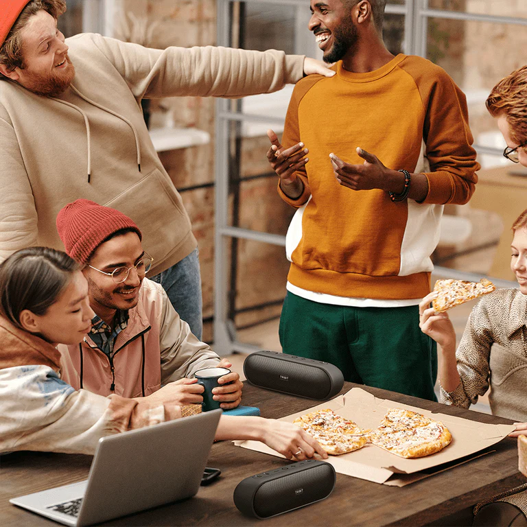 Підвищіть якість звуку за допомогою нашого Bluetooth-динаміка з насиченим стереозвуком. Легко підключайтеся для захоплюючих вражень у приміщенні та на відкритому повітрі, будь-де і будь-коли.