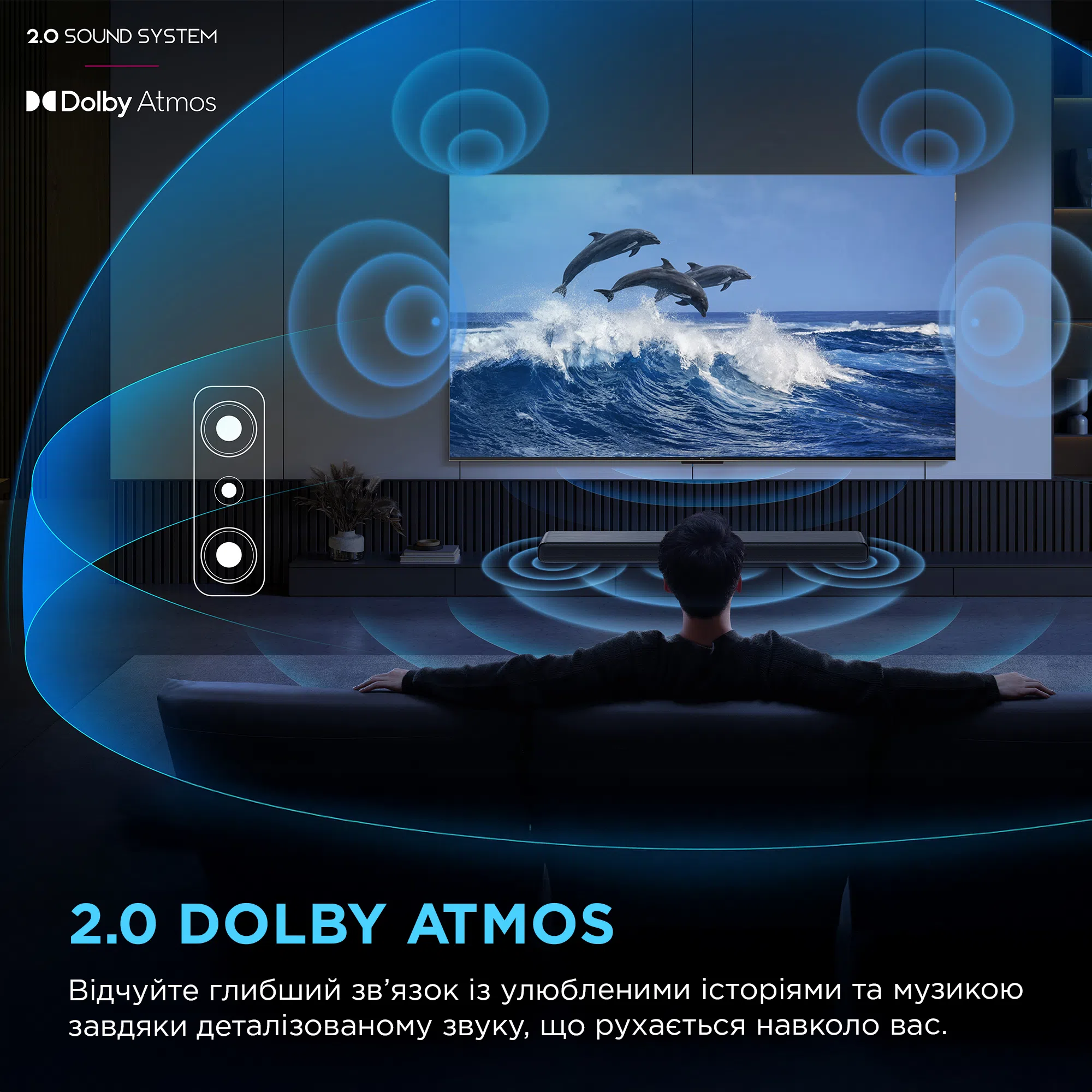 Поринайте в живе просторове звучання з 2.0 каналами технології Dolby Atmos. Відтворюючи більше деталей аудіо, вона створить справжнє занурення в дійство, де ідеально чути всі діалоги, шум вітру і найпотужніші аудіоефекти навколо. Проживіть кожну сцену немов з епіцентру подій.
