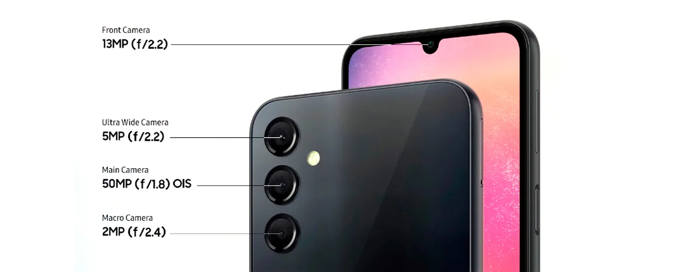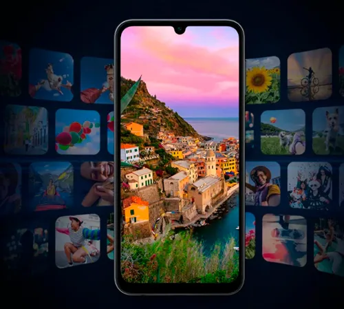 1Зображення на екрані змодельовано в ілюстративних цілях. 1,000 ніт у режимі високої яскравості (HBM). Розмір екрана по діагоналі становить 6,5" у вигляді прямокутника та 6,3" із врахуванням заокруглених кутів. Фактична площа екрана менша через закруглені кути та виріз для камери. Дисплей Galaxy A24 (SM-A245) отримав сертифікат SGS Eye Care Certification, який підтверджує його здатність зменшувати шкідливий вплив синього світла.