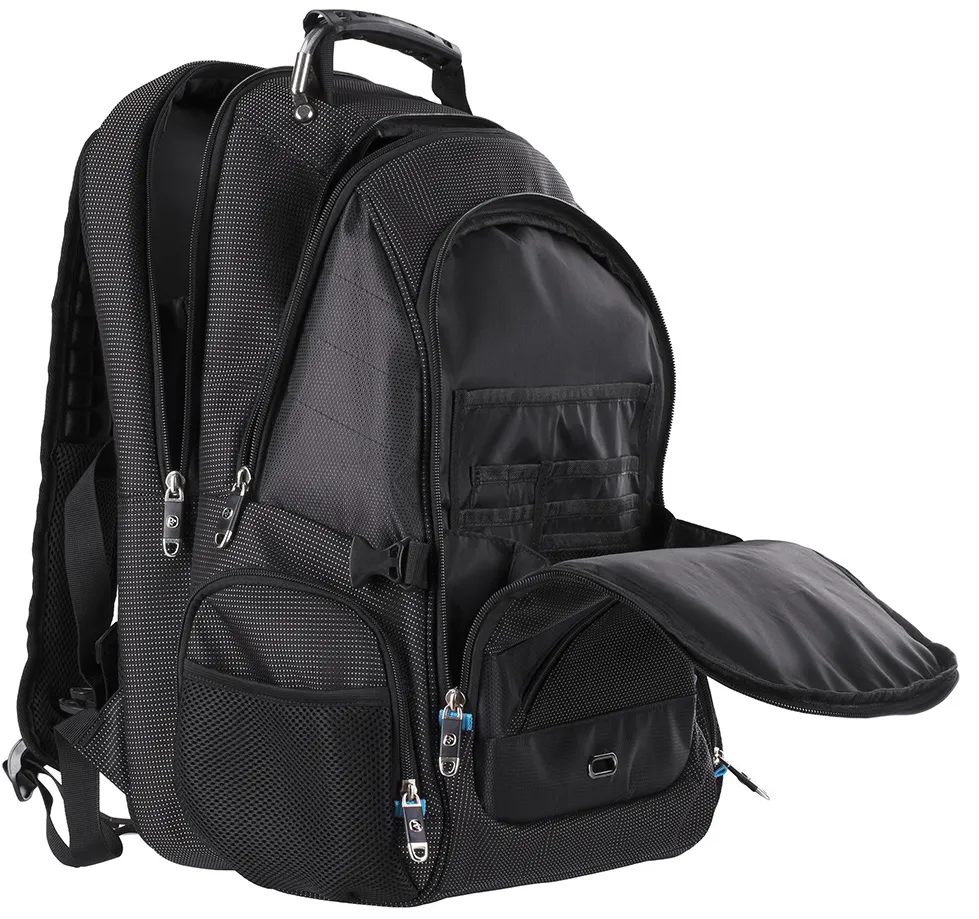 USB інтерфейс, Бічні кишені, Карабін для ключів, Кишеня для аксесуарів, Металева фурнітура, Регульовані лямки, Ручка для перенесення, Спеціальне відділення для ноутбука