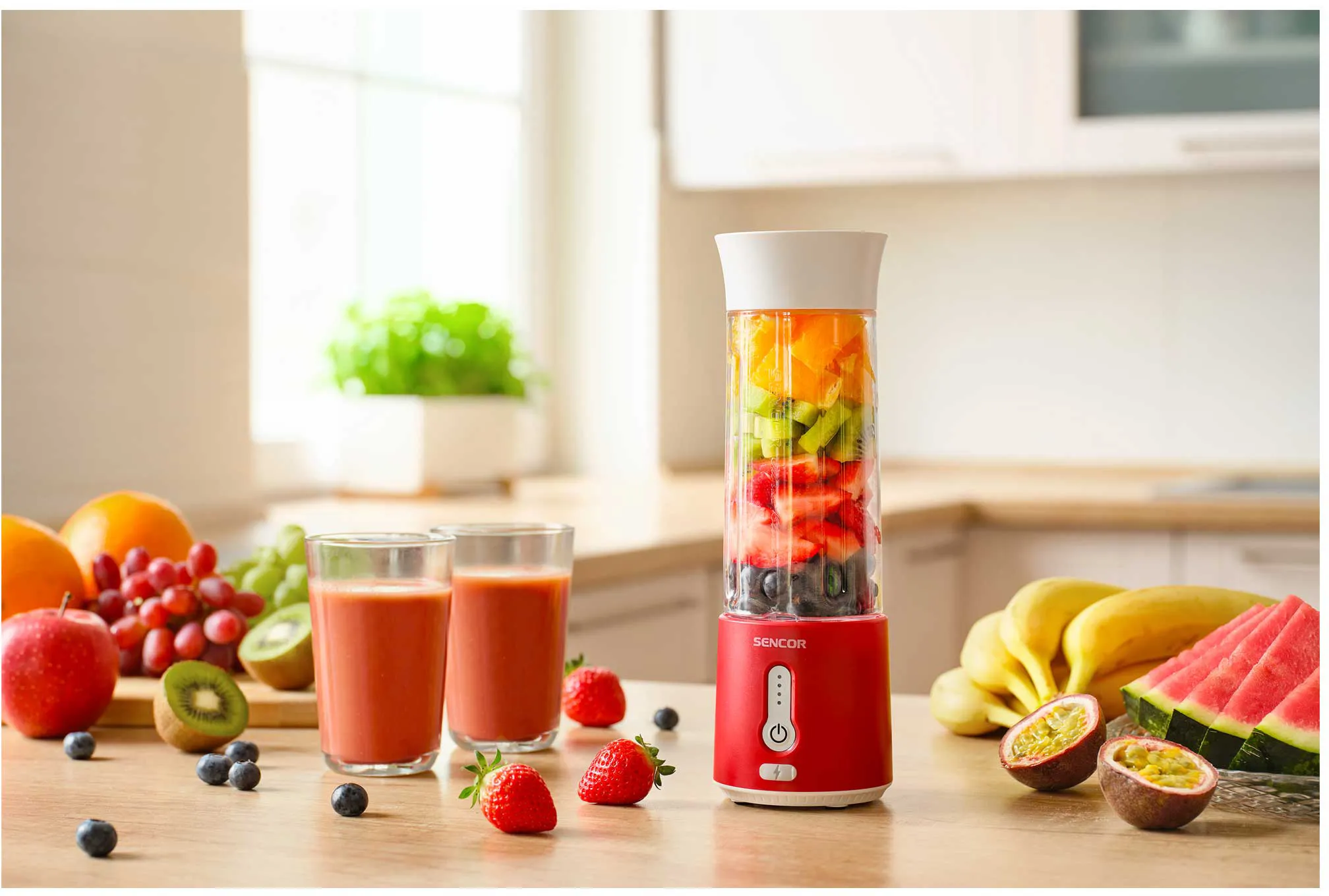 Блендер портативний SENCOR - це компактний і стильний помічник для активних людей. Потужність 150 Вт і гострі леза дають змогу швидко приготувати смузі, коктейлі, пюре або дитяче харчування. Пристрій заряджається через USB-C і забезпечує до 20 циклів роботи на одному заряді, що робить його зручним для використання поза домом. Чаша об'ємом 500 мл підходить для індивідуальних порцій. Завдяки захисту від перегріву і вологозахисту за стандартом IPX65, блендер безпечний і простий у догляді. Нековзні ніжки забезпечують стійкість на будь-якій поверхні.