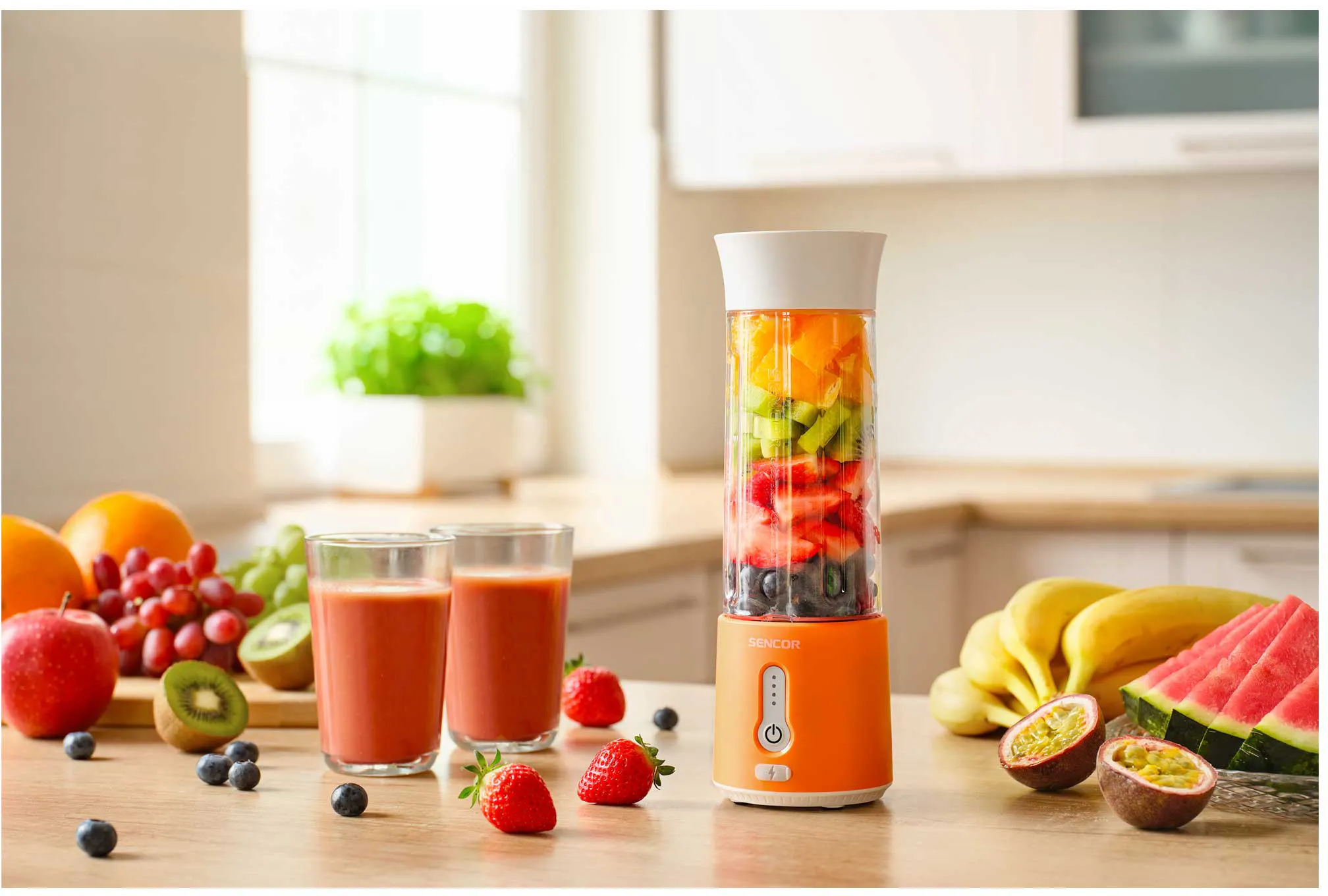 Блендер портативний SENCOR - це компактний і стильний помічник для активних людей. Потужність 150 Вт і гострі леза дають змогу швидко приготувати смузі, коктейлі, пюре або дитяче харчування. Пристрій заряджається через USB-C і забезпечує до 20 циклів роботи на одному заряді, що робить його зручним для використання поза домом. Чаша об'ємом 500 мл підходить для індивідуальних порцій. Завдяки захисту від перегріву і вологозахисту за стандартом IPX65, блендер безпечний і простий у догляді. Нековзні ніжки забезпечують стійкість на будь-якій поверхні.