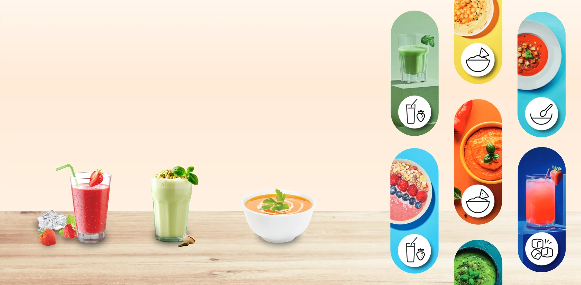 й виснажливе приготування їжі! Робіть соуси, закуски, смузі, діпи та рослинне молоко швидко однією кнопкою! Не шукайте рецепти й не підбирайте режими. Тисніть кнопку Blend up і насолоджуйтеся корисними смаками вже за кілька хвилин!