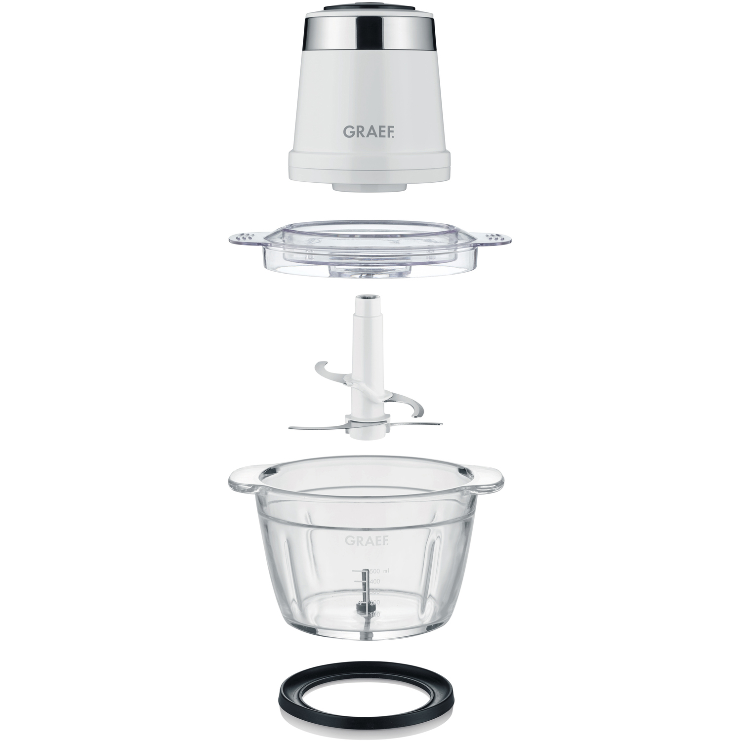 Graef CH501EU – це компактний пристрій, який можна без проблем зберігати в шафі або прямо на столі, якщо ви часто користуєтеся ним. Він не займає багато місця і швидко збирається за потреби. При цьому його якісний скляний контейнер об'ємом 1 л міцний, безпечний для продуктів і простий в очищенні. Його можна мити як вручну, так і в посудомийній машині. А завдяки силіконовому кільцю в основі забезпечується висока стійкість всього аксесуара. Тому подрібнювач ще й максимально зручний та практичний.