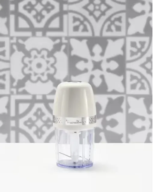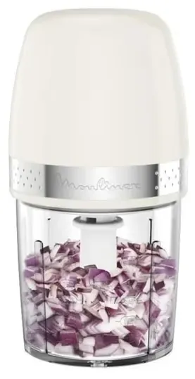 Moulinex DJ360A10 також дуже простий у використанні завдяки зручній системі керування натисканням. Достатньо просто натиснути на верхню частину пристрою, щоб запустити подрібнювання та перемішати все, що вам потрібно.