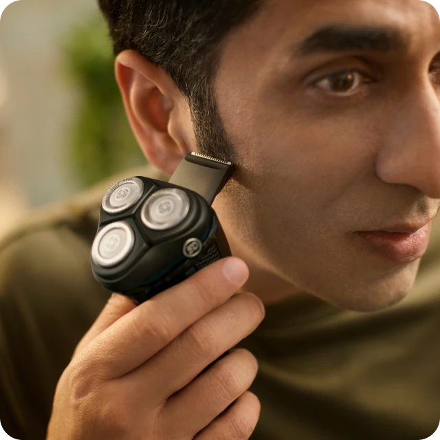 Підрівнюйте вуса та бакенбарди завдяки вбудованому тримеру.