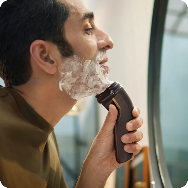 Згинаючись і обертаючись у п'яти напрямках, голівка повторює кожен вигин вашого обличчя – зрізаючи щетину трохи вище рівня шкіри для чистого, комфортного гоління навіть чутливої шкіри.