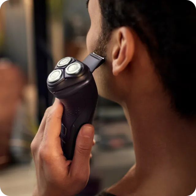 Підрівнюйте вуса та бакенбарди завдяки вбудованому тримеру.