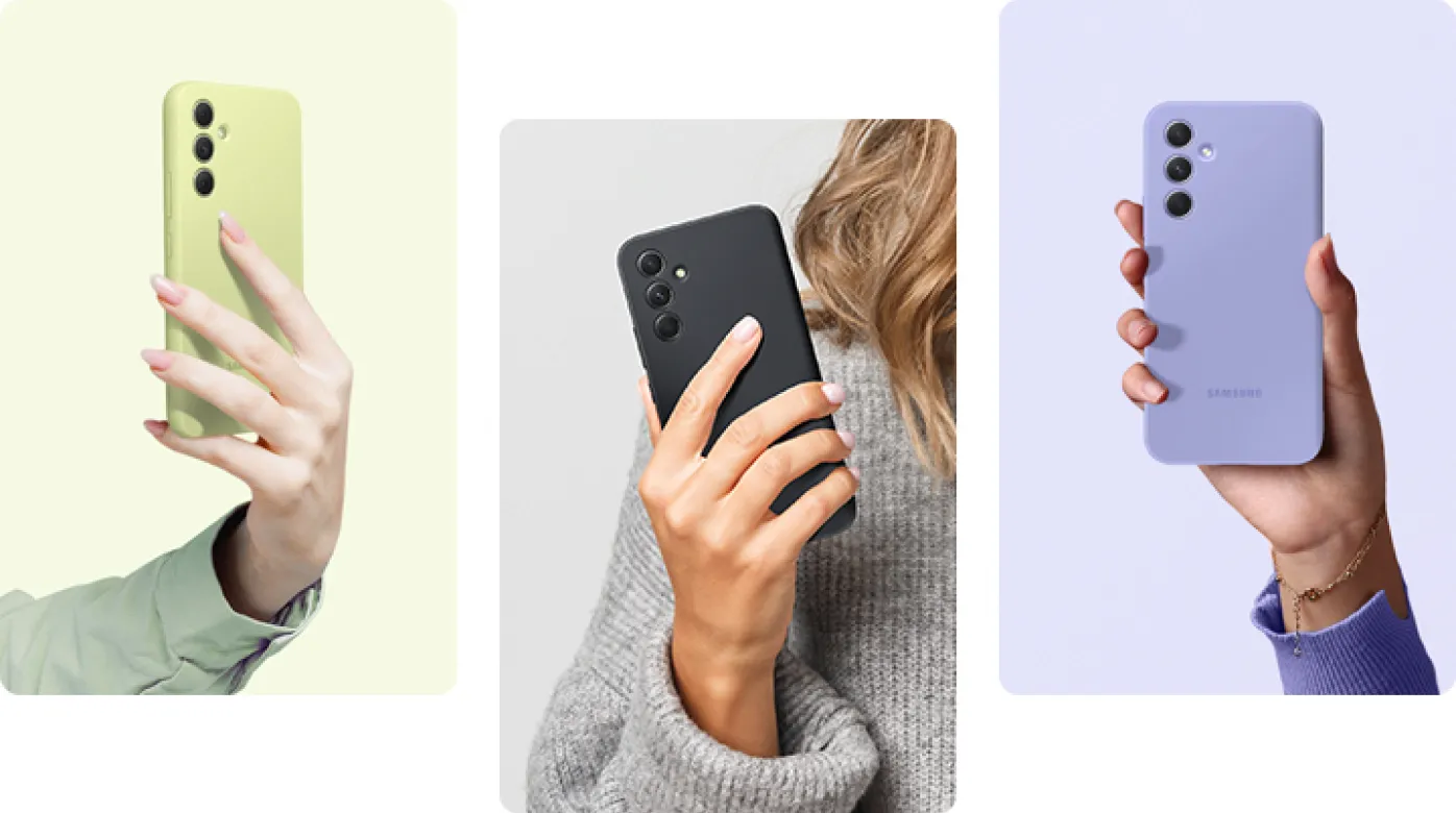 Розфарбуйте свій світ. Силіконовий чохол A54 5G доступний у чорному, чорничному та лаймовому кольорах для приємної естетики, яку ви можете змінювати відповідно до свого настрою чи одягу.