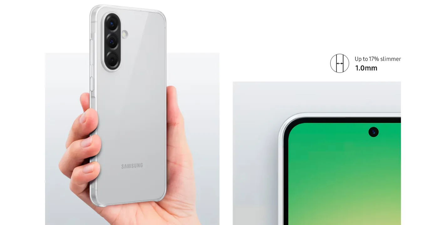 Підкресліть колір Galaxy A56 завдяки прозорому чохлу, який не лише надійно захищає пристрій, а й додає вишуканого глянцевого ефекту.