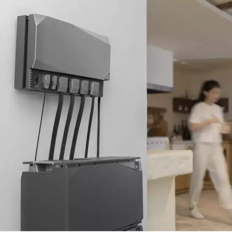 EcoFlow Power Hub — це серце системи, що поєднує в собі два контролери заряду від сонячних батарей MPPT, один зарядний пристрій MPPT, один знижуючий перетворювач постійного струму та один інверторний зарядний пристрій. Поєднавши 5 компонентів в один, він заощаджує ваш простір.