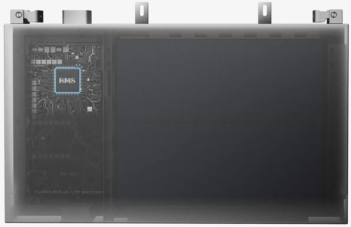 Кожен акумулятор EcoFlow Power Ocean оснащений вдосконаленою системою BMS. Вона постійно відстежує стан та температуру осередків, регулюючи їх у режимі реального часу для забезпечення оптимальної продуктивності, а також захищає від небезпечних та небажаних ситуацій на кшталт перегріву, перезаряду та глибокої розрядки. Більше того, оскільки модуль BMS інтегрований у кожну батарею, вихід з ладу одного акумулятора не вплине на інші, якщо вони з'єднані в одну систему.