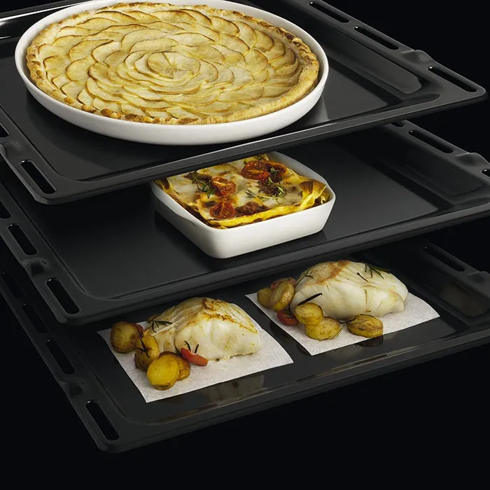 Розміщуйте та діставайте свої страви з духової шафи безпечно й без зайвих зусиль завдяки однорівневим висувним напрямним. Адже вони створені для максимального спрощення приготування.
