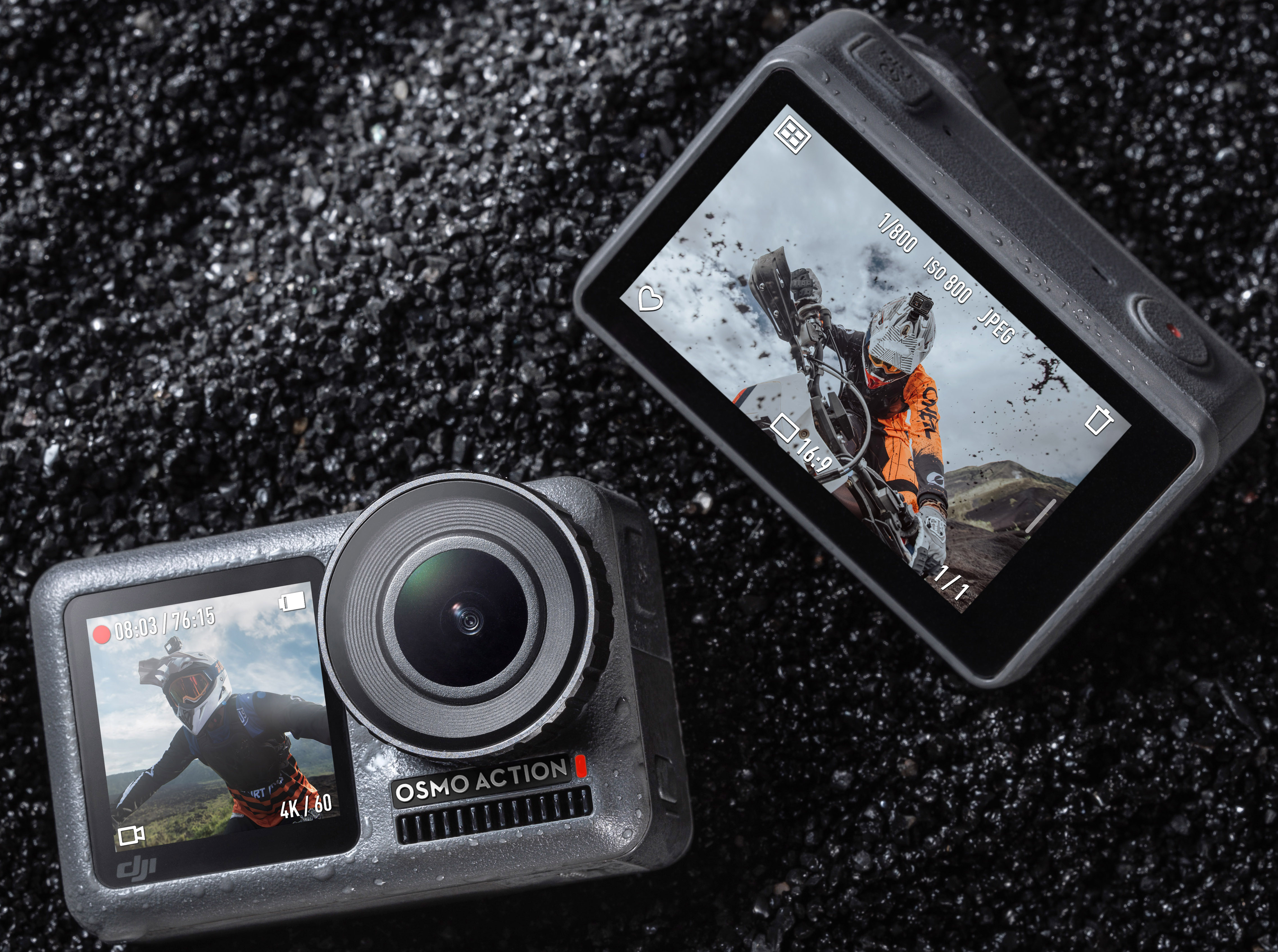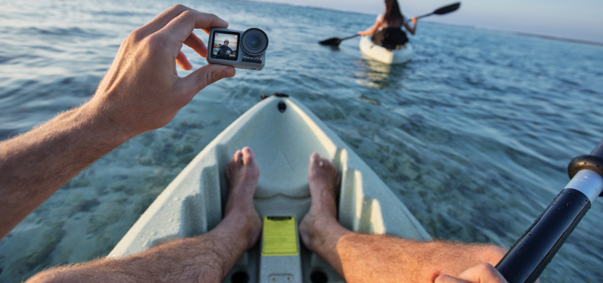 Бажаєте записати захоплююче відео по інший бік об'єктива? Два екрани Osmo Action дозволяють зняти все це одним натисканням кнопки. Яскравий фронтальний екран дозволяє легко створювати унікальні кадри, а задній екран є яскравим гіперчутливим дисплеєм. Міцна та універсальна екшн-камера оснащена передовою технологією, яка дозволяє менше витрачати час на підготовку устаткування і більше приділяти уваги знімальному процесу.