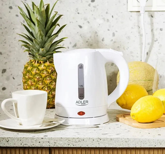 Електрочайник Adler AD 1272 - це компактне і функціональне рішення для повсякденного використання. Завдяки потужності 1600 Вт і об'єму 1 літр, він швидко закип'ятить воду для чаю, кави або інших гарячих напоїв. Модель виконана в лаконічному білому дизайні, який відмінно впишеться в будь-який інтер'єр. Корпус із міцного пластику простий у догляді, а дисковий нагрівальний елемент забезпечує рівномірне кип'ятіння без зайвого шуму. Пристрій оснащений фільтром від накипу і системою захисту від включення без води, що робить його безпечним в експлуатації. Ергономічна ручка і зручний носик полегшують налив води, а компактна форма чайника дає змогу заощадити місце на кухні або в офісі. AD 1272 - надійний помічник, що поєднує в собі простоту, ефективність і продуманий функціонал.