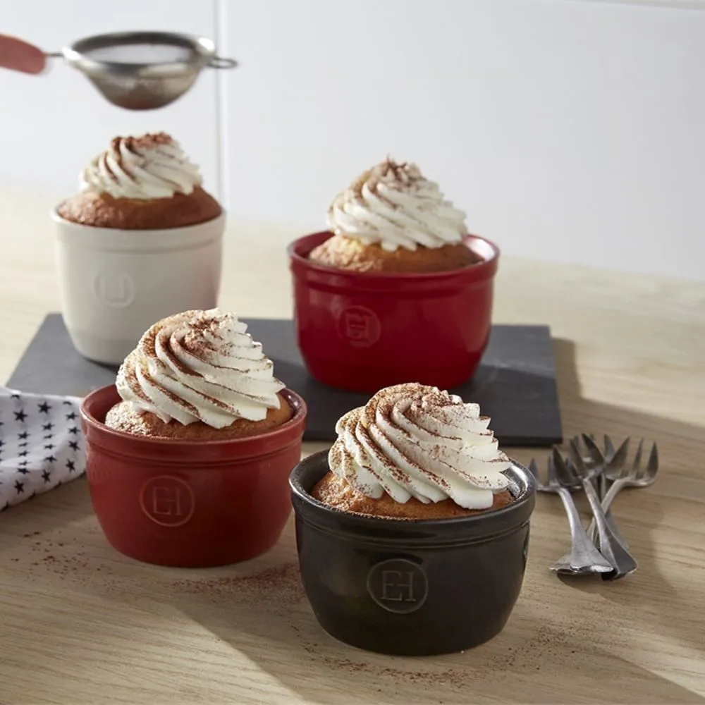 Використовуйте правильну форму для свого рецепту, щоб створити гармонію смаку і подачі. Набір порційних рамекінів від Emile Henry стане чудовим вибором для приготування різних десертів і закусок. Невеликі, але практичні, вони ідеальні для запікання та стильного сервірування. Форми виготовлені зі спеціальної кераміки, стійкої до ударів, подряпин та термічних ударів, а також витримують температуру від -20°C до 270°C. У них можна приготувати окремі порції закусок та десертів, особливо вони гарні для шоколадного суфле, фондана, крем-брюле, ягідного мусу, але ніщо не заважає приготувати в них традиційний пудинг або різні пікантні частування. А завдяки краю формочки, що розширюється до верху, можна складати їх один до одного, що економить цінне місце на кухні при зберіганні.