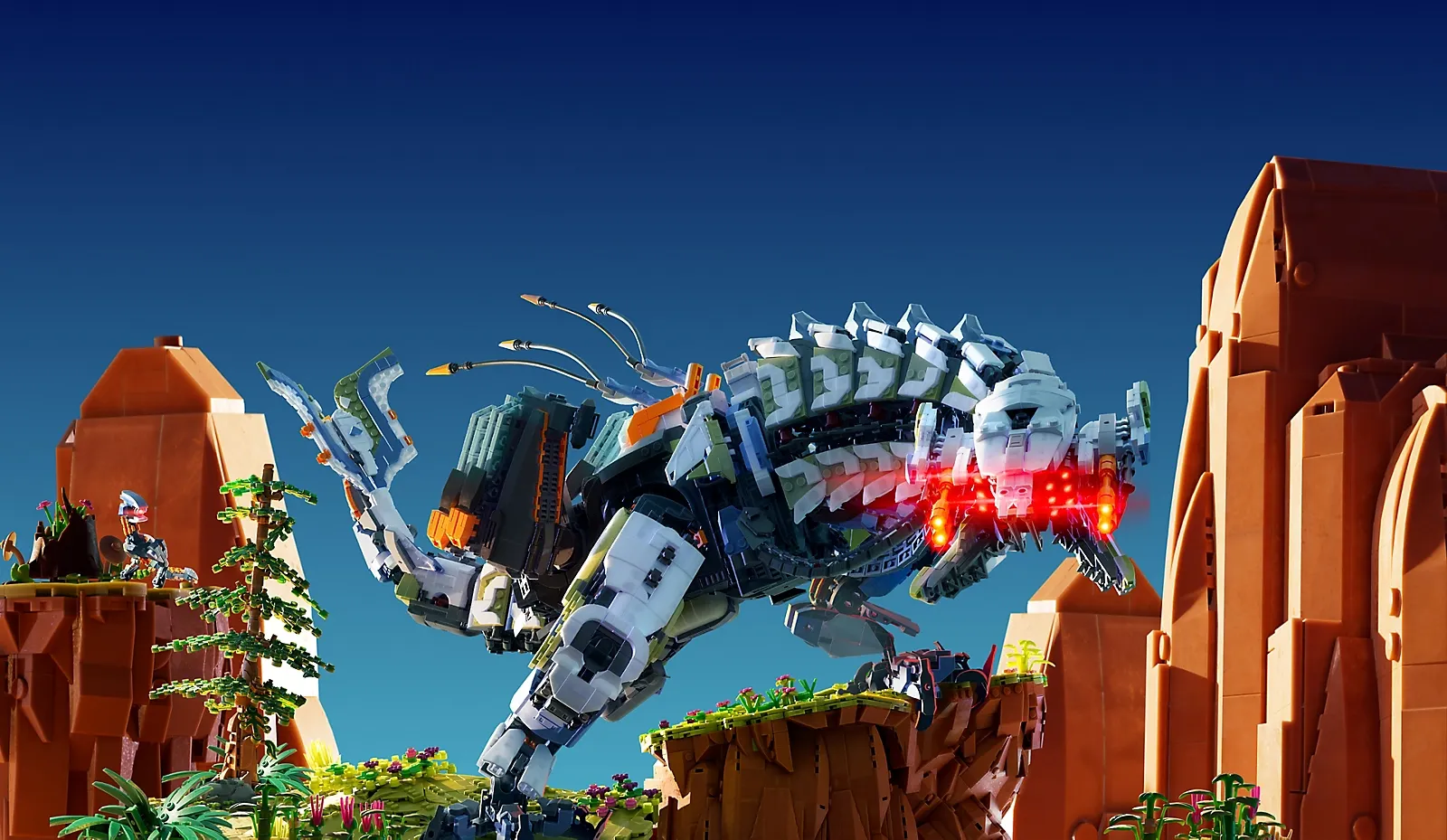 Досліджуйте улюблений світ Horizon і зіткніться віч-на-віч із вражаючими механічними істотами гри, точно відтвореними з кубиків LEGO.