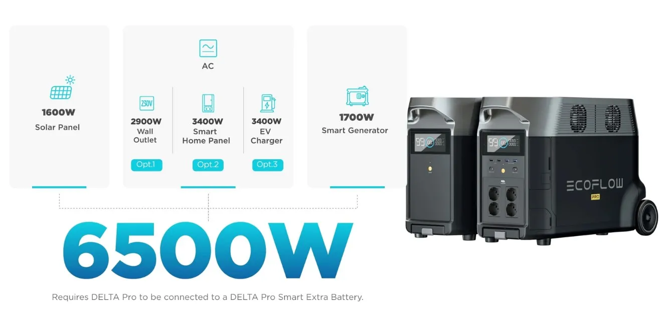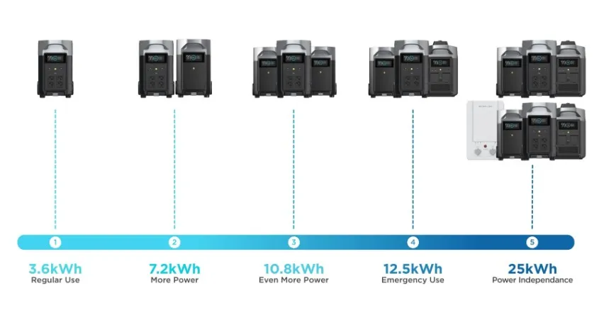 Вибравши додаткові батареї, інтелектуальні генератори, сонячні трекери, вітряні турбіни, панелі розумного будинку та багато іншого - ви забезпечите собі живлення під час відключень електроенергії, енергію, що настроюється цілодобово і нижчі рахунки за електроенергію. Екосистема DELTA Pro може бути налаштована відповідно до ваших потреб - від резервного живлення до зниження вашої залежності від мережі за допомогою екологічних альтернатив.