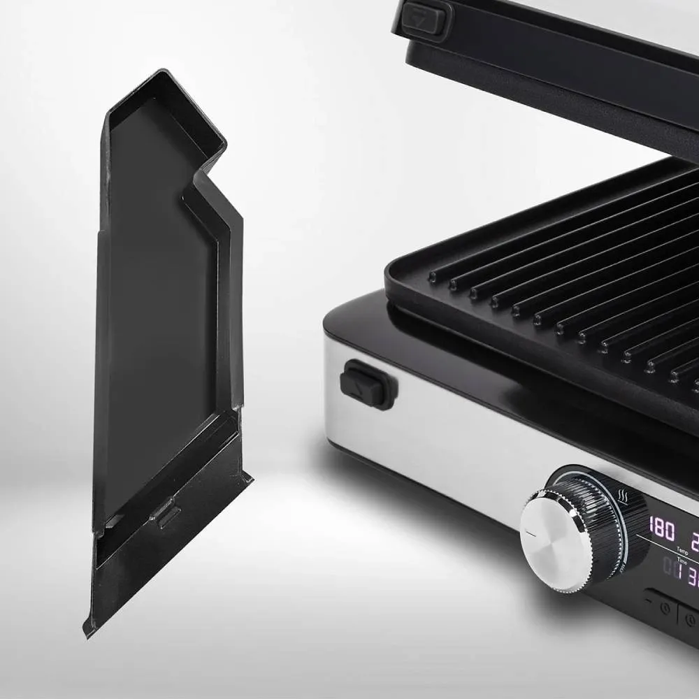 Робочі поверхні приладу відкриваються на 180°, що робить можливим використання гриля як повноцінної жарочної станції. Дві знімні панелі з антипригарним покриттям (29 × 23 см) легко очищаються після використання. Спеціальні канали для стоку жиру і піддон, що входить в комплект, допомагають зберігати чистоту і готувати з користю для здоров'я. Polaris PGP 7001D — це сучасне рішення для тих, хто цінує смак, швидкість і зручність на кухні.