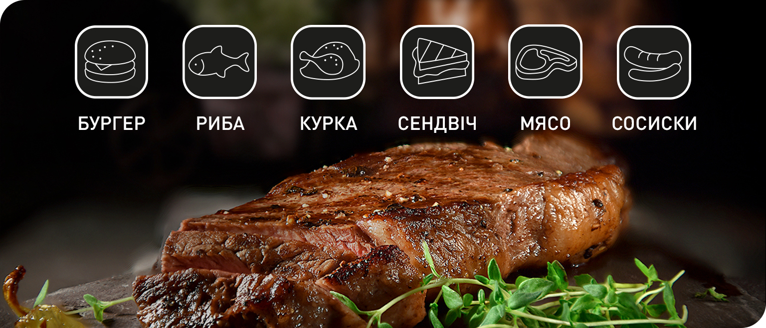 За допомогою гриля ви зможете готувати різноманітні страви для всієї родини на кожен день. Автоматичні програми розроблені спеціально для кожної категорії страв.