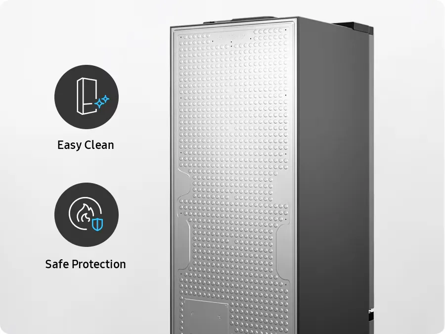 Очистити задню стінку вашого холодильника стало ще простіше. Захисний короб захищає кабелі й легко піддається очищенню, тож можна не переживати за комплектуючі холодильника.