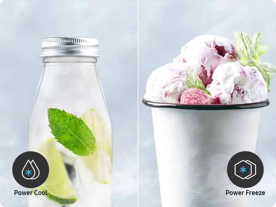 Насолоджуйтеся швидким охолодженням. Одним натисканням кнопки Power Cool інтенсивно вдуває холодне повітря у холодильник, аби за хвилини охолодити ваші продукти чи улюблені напої. Power Freeze забезпечує стрімку подачу холодного повітря у морозильну камеру.