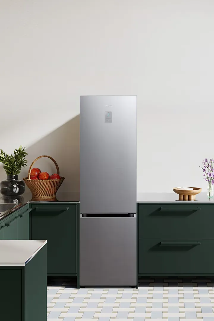 Розмістіть холодильник у зручному для вас місці, не зважаючи на стіни. Конструкція реверсивних дверцят дозволяє відчиняти їх на 90°, не зачіпаючи краєм жодну стіну*. Таким чином, ви можете розмістити холодильник у найзручнішому місці, а дверцята повністю відчинятимуться до рівня бокової стіни.