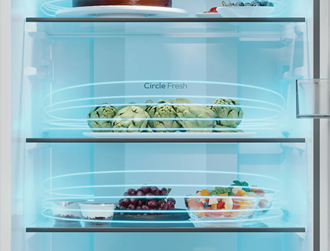 Технологія Total No Frost Circle Fresh забезпечить рівномірне охолодження камер з бічною подачею холоду для збереження приголомшливої свіжості. Так всі продукти збережуть свій чудовий смак, аромат, текстуру і корисні властивості без утворення інею і неприємних запахів всередині холодильника.
