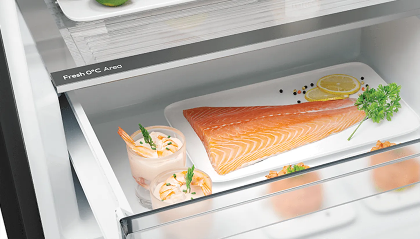 Відділення свіжості 0°C дасть змогу точно контролювати температуру для зберігання найделікатніших продуктів, щоб вони довше залишалися свіжими після покупки. У режимі 0°С ви зможете охолоджувати рибу, м'ясо та морепродукти, а у звичайних умовах охолодження зберігати будь-які продукти без ризику поширення запахів.