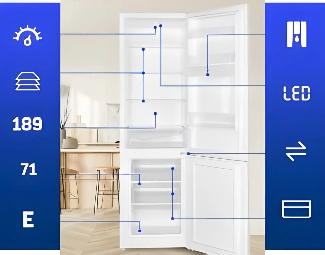 Шукаєте ідеальний холодильник, що поєднує в собі найсучасніші технології та енергоефективність? Представляємо вам холодильник Heinner HC-HM260WDE++ - втілення інновацій у світі побутової техніки. Завдяки класу енергоспоживання А++ цей холодильник економічний у використанні, даючи змогу вам заощадити на рахунках за електроенергію. Загальний об'єм 260 л забезпечує достатньо простору для зберігання продуктів, з них 189 л припадає на холодильну камеру, а 71 л - на морозильну. Електронне управління з регульованим термостатом забезпечує точне налаштування температури з урахуванням вашого комфорту. Не потрібно шукати окремий диспенсер для води - вбудований диспенсер для води дає змогу легко отримувати свіжу воду прямо з холодильника. Світлодіодне освітлення забезпечує яскраве освітлення всередині, щоб завжди могли знайти потрібний продукт.