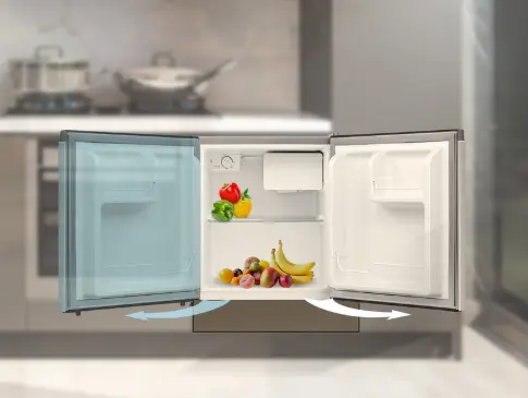 Можливість зміни сторони відкривання дверей дозволить вам налаштувати напрямок відкривання дверей відповідно до ваших індивідуальних потреб або планування простору в кімнаті, де буде розміщено холодильник. Ця функція забезпечує гнучкість у позиціонуванні пристрою та спрощує його використання в різних умовах. Регульовані ніжки дозволяють регулювати висоту пристрою та його рівномірне, стабільне розташування на різних поверхнях. Універсальний дизайн , який ідеально вписується в різні стилі та інтер'єри. Компактні розміри дозволяють легко розмістити пристрій навіть у невеликому просторі та вмонтувати його у вбудовані меблі. Важливо пам'ятати про необхідність забезпечення належної вентиляції під час встановлення для належної роботи пристрою.