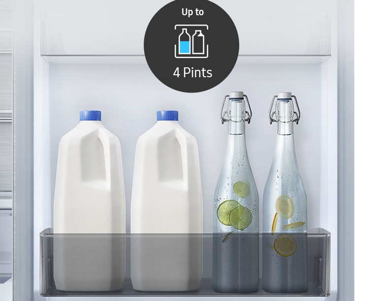 Поліпшене використання простору холодильника з функціональною полицею для напоїв. Продуманий дизайн з широкою виїмкою дозволяє зберігати навіть пляшки з-під шампанського, а плоска форма полиць може бути використана для зберігання інших продуктів, наприклад, коробок для яєць.