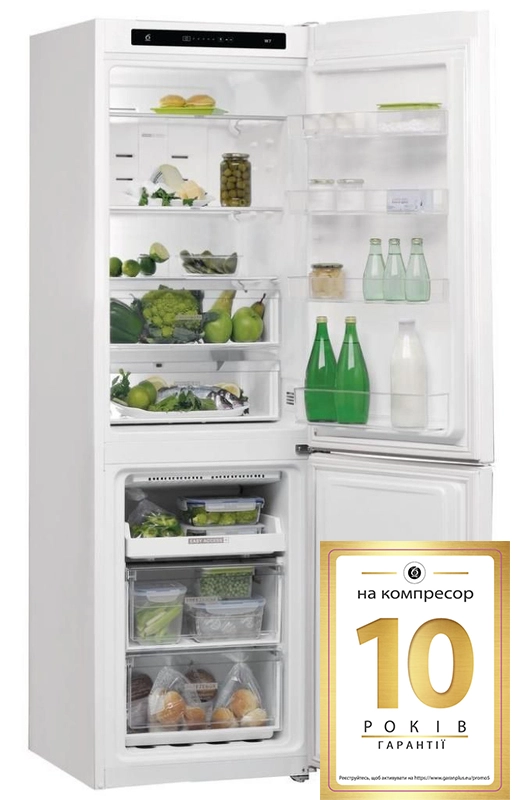 Металева зовнішня ручка холодильника забезпечить комфортне використання і підійде до будь-якого інтер'єру. Енергоефективне LED освітлення забезпечує рівномірне освітлення всієї холодильної камери.
