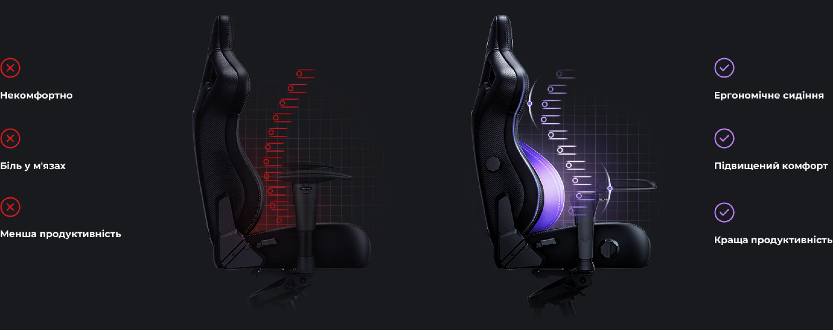 Незалежно від того, граєте ви, чи працюєте, ви завжди можете відрегулювати поперекову підтримку відповідно до свої потреб.