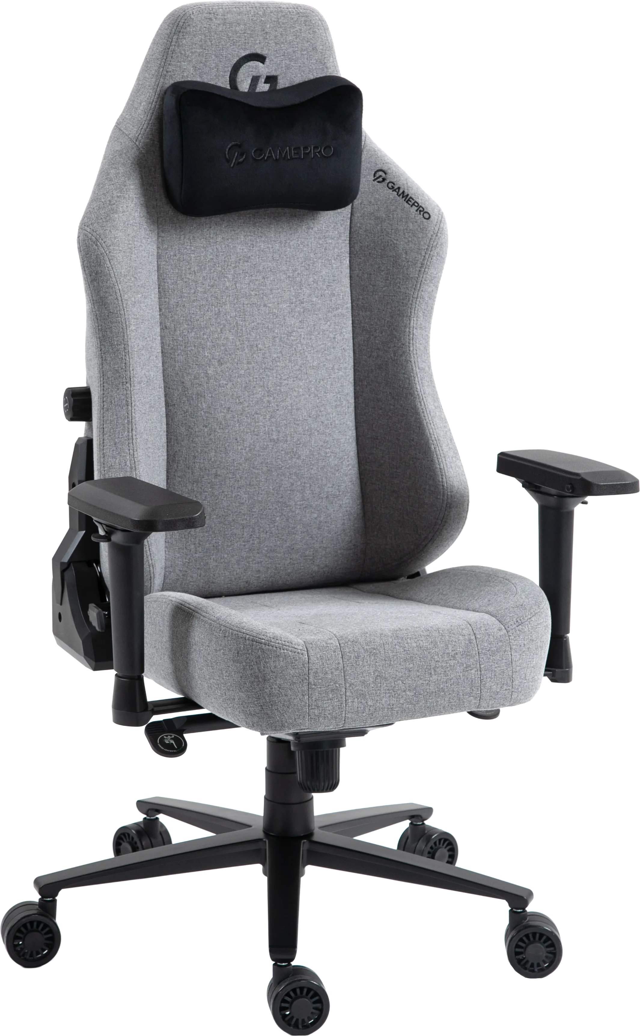 Ергономічне ігрове крісло GamePro створено для тих, хто проводить за комп'ютером довгі години і цінує комфорт на рівні професіоналів. Оббивка з міцної і приємної на дотик тканини виглядає стильно і гармонійно вписується в будь-який простір — від офісу до ігрової зони. Наповнення з піни холодного формування забезпечує оптимальну м'якість і підтримку, не втрачаючи форми навіть після тривалого використання.