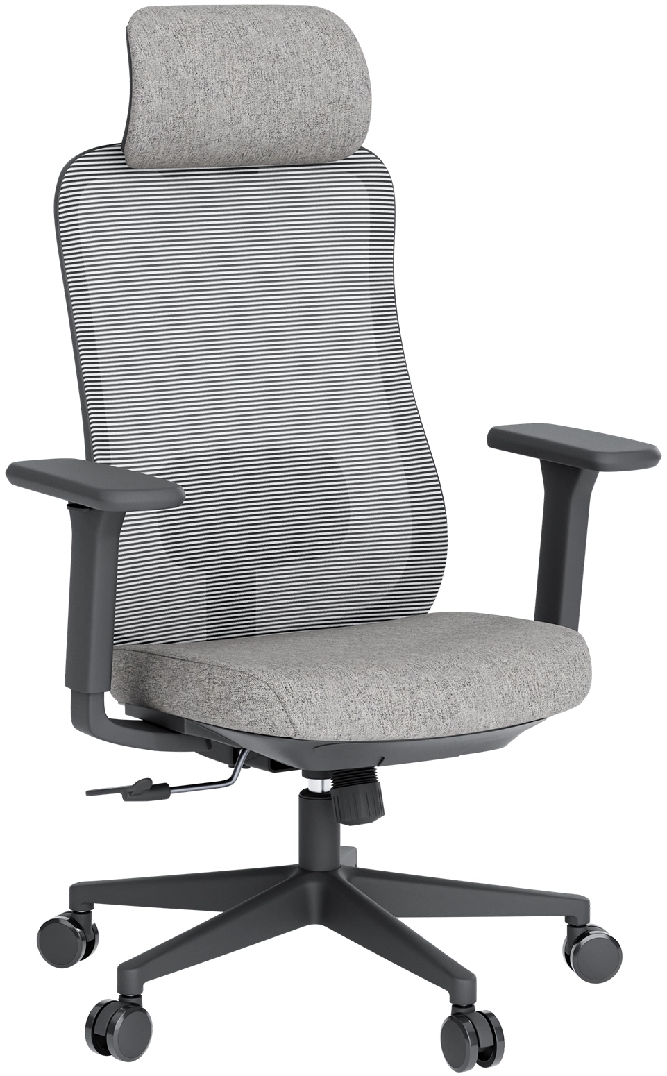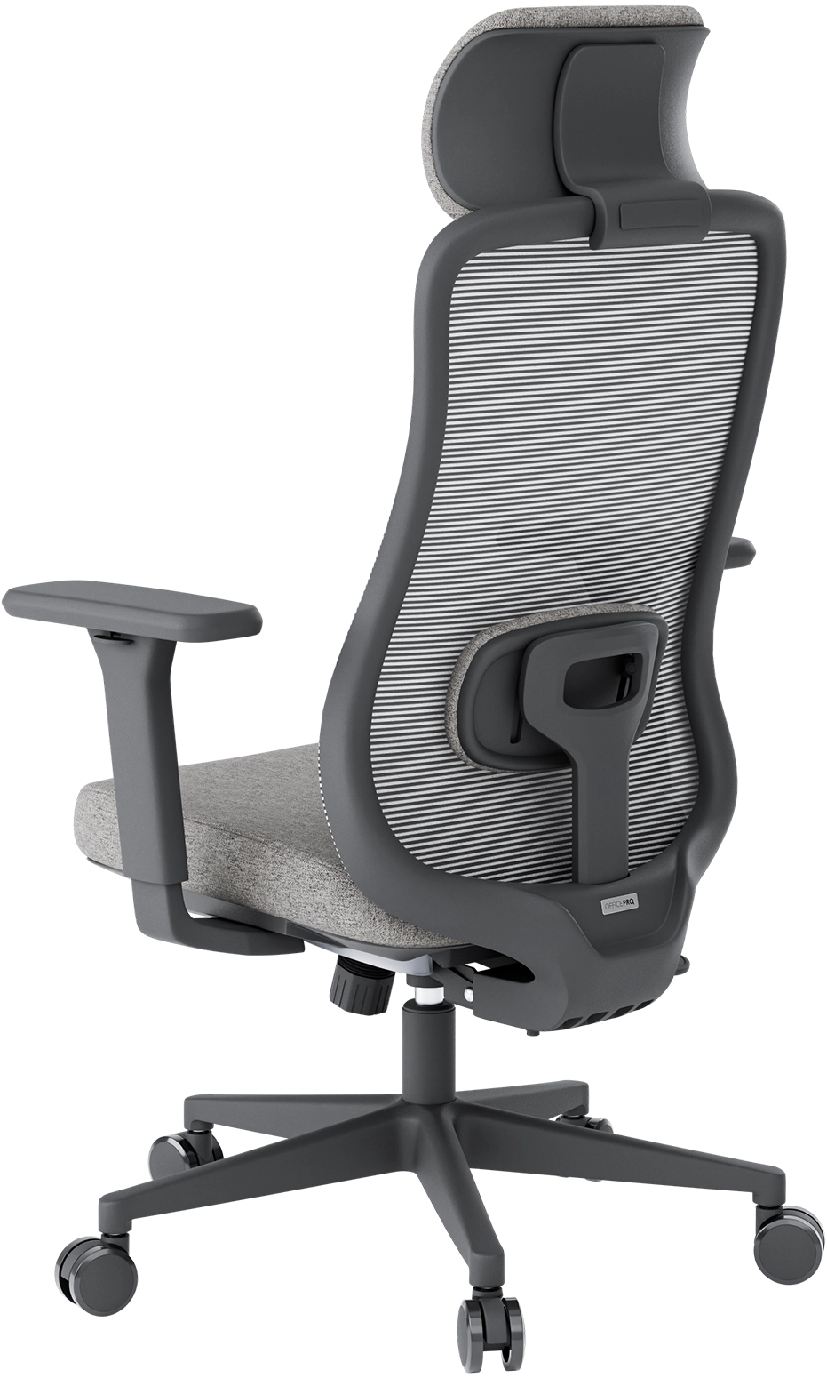 Регульований підголівник з м'якою піною дозволяє індивідуально налаштувати висоту, забезпечуючи комфортну підтримку шиї. Система підтримки попереку з можливістю зміни висоти і положення створює правильне анатомічне вирівнювання спини, допомагаючи уникнути втоми навіть при тривалій роботі за столом. Завдяки цим елементам крісло адаптується до особливостей користувача, підтримуючи природне положення тіла.