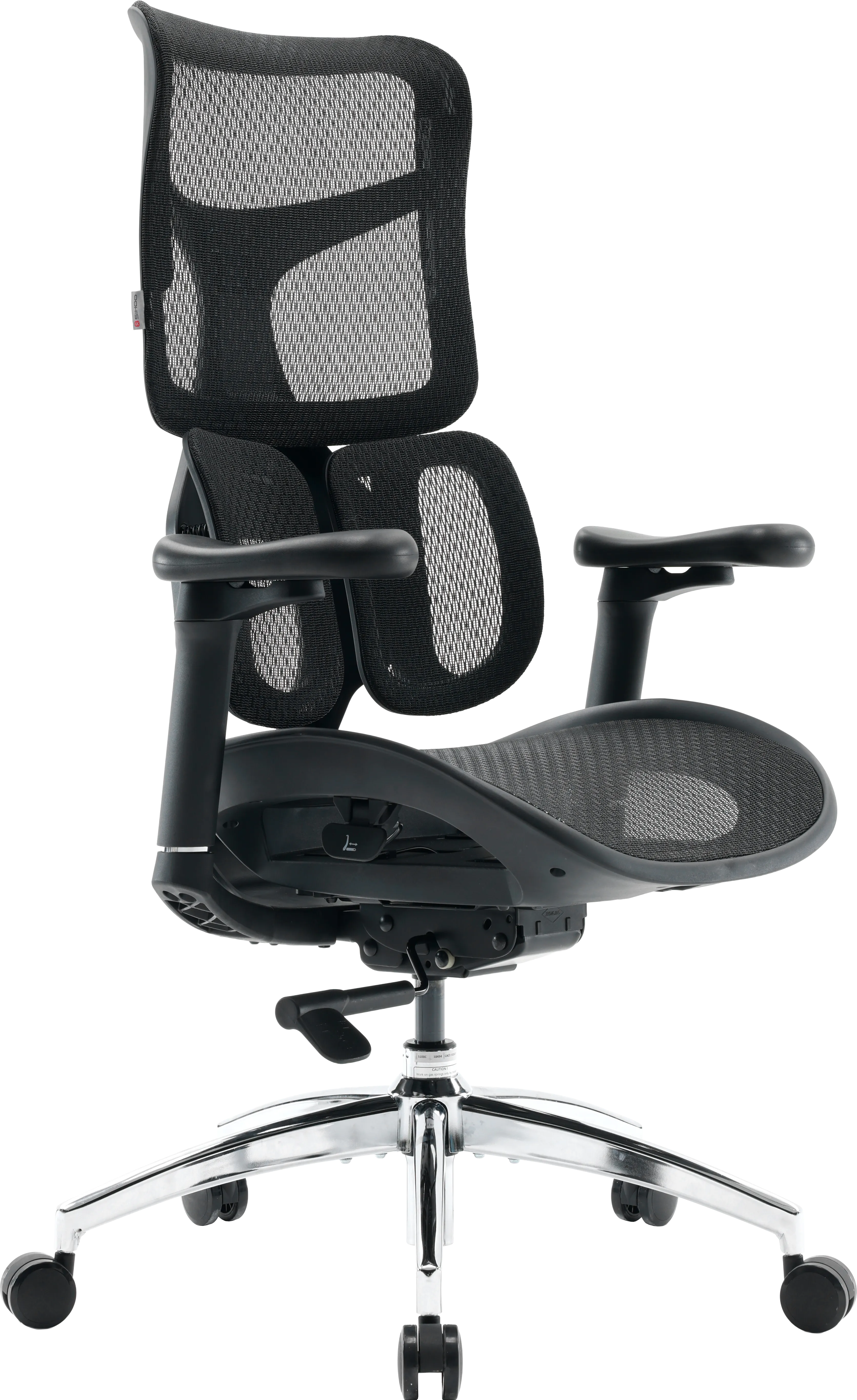 Крісло Sihoo Doro S100 створено для максимального комфорту та турботи про здоров'я спини. Його головна особливість — подвійна динамічна поперекова підтримка, яка автоматично адаптується під форму тіла і зміну пози, знижуючи навантаження на хребет. 4D-підлокітники регулюються по висоті, глибині, куту і рухаються синхронно зі спинкою, забезпечуючи стійку підтримку рук при будь-якому положенні. Спинка оснащена п'ятьма рівнями регулювання, що дозволяє налаштувати її під плечі і шию користувачів різного зросту. Завдяки регульованій глибині сидіння до ~5 см тиск на ноги розподіляється рівномірно, покращуючи кровообіг і запобігаючи втомі під час тривалого сидіння.