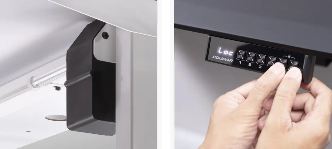 Він приводиться в дію надійним двигуном, який працює з рівнем шуму менше 50 дБ. Зберігайте спокійну робочу обстановку під час кожного регулювання. Конструкція із 2-ступінчастими колонами забезпечує швидкість підйому 2.5 см/с. Функція блокування панелі контролера дозволяє уникнути ризику випадкового спрацювання.