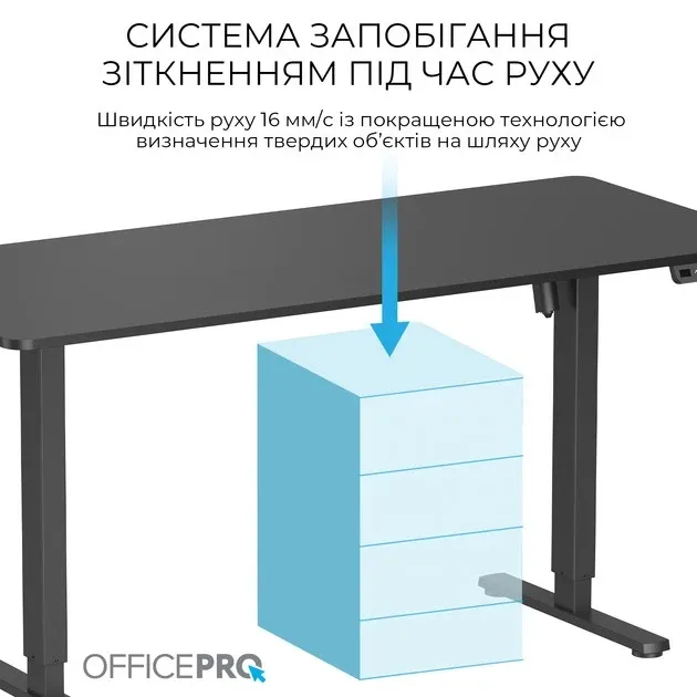 Потужні підйомні колони забезпечують тихий, плавний рух. Система запобігання зіткненням виявляє об'єкти на шляху руху, щоб запобігти зіткненню. Проста панель керування дає змогу легко регулювати висоту, а програмовані налаштування пам'яті зберігають улюблені налаштування для додаткової зручності.